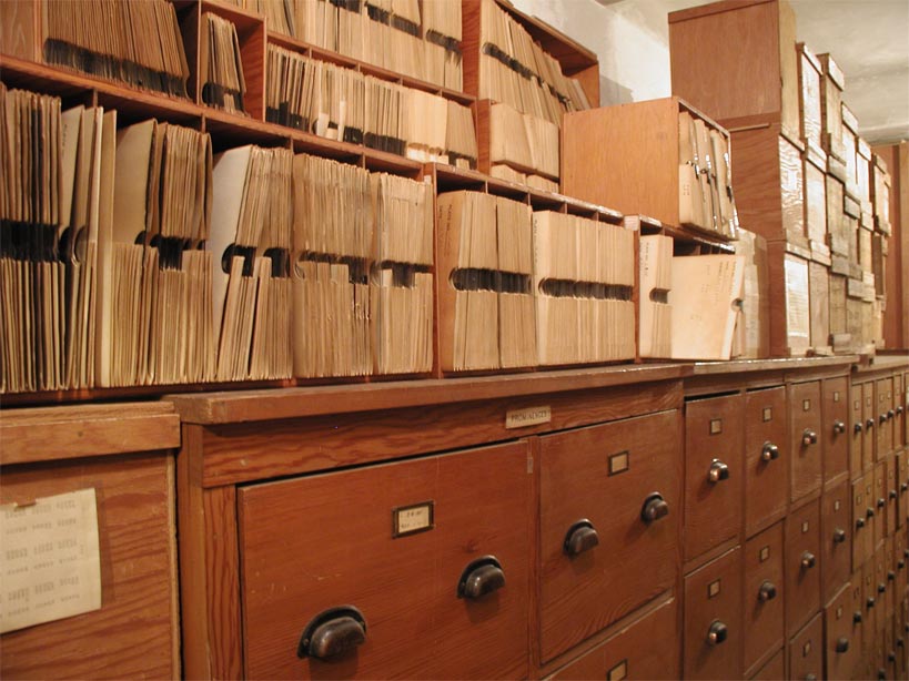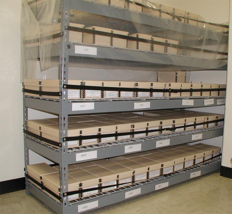 The bottom figure shows the storage of the plates obtained by Prof. Robert Leighton between 1959 and 1964. These include some of the finest examples of spectroheliograms available. Many were published in 1966 by The Carnegie Observatories in a volume authored by Dr. Alan Title and entitled "Selected Spectroheliograms".