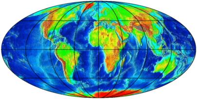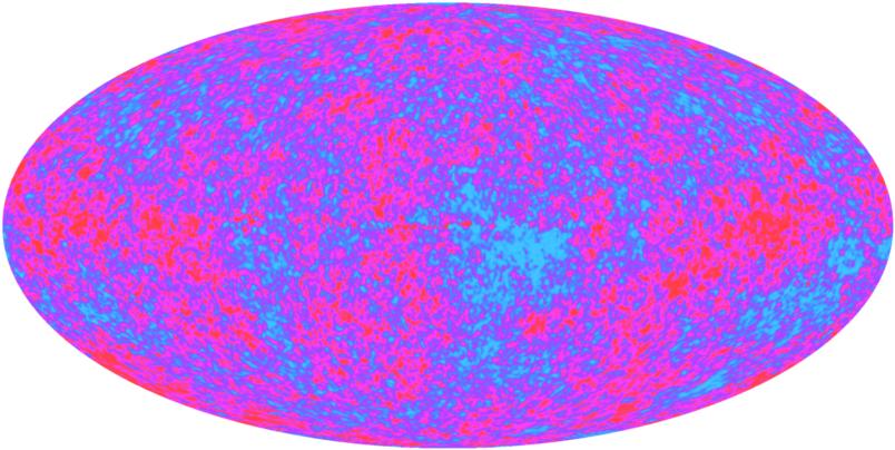 The anisotropy of the cosmic microwave background (CMB) consists of the small temperature fluctuations in the blackbody radiation left over from the Big Bang. The average temperature of this radiation is 2.725 K as measured by the FIRAS instrument on the COBE satellite. Without any contrast enhancement the CMB sky looks like the upper left panel of the figure below. But there are small temperature fluctuations superimposed on this average. One pattern is a plus or minus 0.00335 K variation with one hot pole and one cold pole: a dipole pattern. A velocity of the observer with respect to the Universe produces a dipole pattern with dT/T = v/c by the Doppler shift. The observed dipole indicates that the Solar System is moving at 368+/-2 km/sec relative to the observable Universe in the direction galactic longitude l=263.85o and latitude b=48.25o with an uncertainty slightly smaller than 0.1o. If we subtract the average temperature and expand the contrast by a factor of 400, we get the upper right panel below. This shows the dipole pattern and the emission from the Milky Way which dominates the red color in the picture, which represents the longest wavelength data. After the average temperature and the dipole pattern are removed, there are intrinsic fluctuations in the CMB which can be seen faintly away from the Milky Way in the lower left panel below, which has constrast enhanced by 2000X. Finally we can combine the multiple frequencies in a way that eliminates the Milky Way, giving the CMB map in the lower right with a 30,000X contrast enhancement.