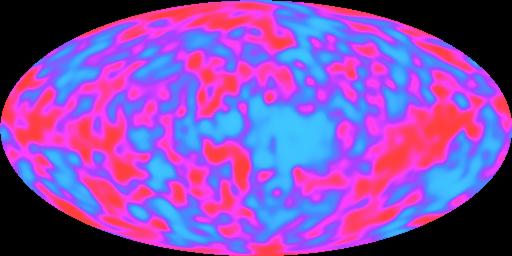 Legend: Temperature fluctuations in the cosmic microwave background radiation after the dipole pattern (due to the Solar System's motion relative to the rest of the Universe) and the strong emission from the Milky Way galaxy have been removed. Based on 4 years of data from COBE.