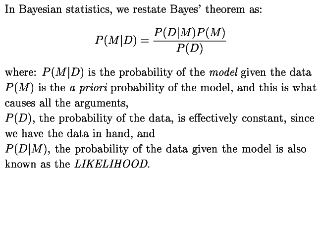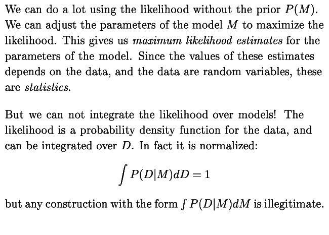 If these experiments are any good, then the combined likelihood will be sharply peaked. But if the experiments are not very definitive, then a priori assumptions about the model can determine the most likely case. These assumptions can be codified in the prior distribution. Since the Bayesian approach gives us a place to put our a priori assumptions, it encourages us to think about them, which is generally a good thing. but if the choice of the prior distribution has a significant effect on the outcome, then we just don't have enough data.