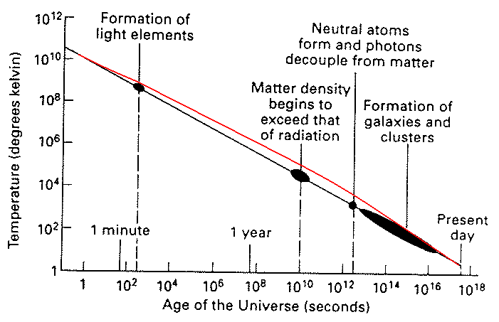 Both "Ripples in the Cosmos" by Michael Rowan-Robinson and "Shadows of Creation" by Riordan and Schramm have exactly the same temperature vs time graph. More remarkably, this duplicated graph is incorrect in a way that both Rowan-Robinson and Schramm could easily spot. The red curve on the figure below is the correct temperature vs time curve for Omega=1, Ho = 65.
