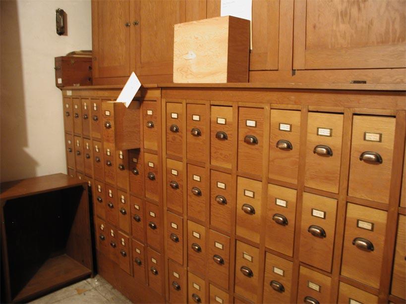 The bottom figure shows the storage of the plates obtained by Prof. Robert Leighton between 1959 and 1964. These include some of the finest examples of spectroheliograms available. Many were published in 1966 by The Carnegie Observatories in a volume authored by Dr. Alan Title and entitled "Selected Spectroheliograms".