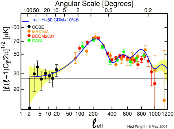 [3] Smoot also used 3 of my slides without asking for permission or giving any credit (at about 31:27, 31:34 and 38:00). He even went so far as to crop off part of the x-axis label on the third of these slides to avoid showing my name. Here is a photo taken of the online video of Smoot's lecture, and here is original image. The original context was meant to show that the BOOMERanG experiment published data with serious systematic errors in 2000. Smoot greatly distorted this message in his lecture.