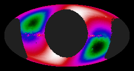The Figure below shows the 25 micron weekly maps from DIRBE as an animated GIF file. At this wavelength, the zodiacal emission dominates the sky, so only a very thin galactic plane emission can be seen over the interplanetary dust.