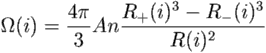 In his CMB page on 27 July 2001 Stolmar gave the following equation for the solid angle covered by stars in a shell with radii between R- and R+,