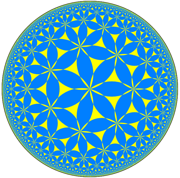 formed by these circles has been filled with blue and gold. When this image