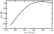 vs a = 1/(1+z) when w = -0.752-0.86*z/(1+z), which is the best fit to the