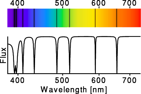 In the spectrum at right, the dark lines are 2 from ionized calcium
