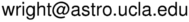 Prof. Wright is interested in infrared astronomy and cosmology. He is the PI on the Wide-field Infrared Survey Explorer (WISE) which launched on 14 Dec 2009, and finished its first coverage of the whole sky on 17 Jul 2010. As of May 2024, WISE is still observing at 3.4 and 4.6 μm, but the orbit is decaying fairly fast. WISE is in the middle of its 15th year, and has surveyed the whole sky 23 times. WISE is currently operating as a Planetary Defense mission looking for hazardous asteroids. Wright is currently deputy PI for the Near Earth Object Surveyor, formerly NEOCam, an improved infrared asteroid survey planned by NASA's Planetary Defense Coordination Office.