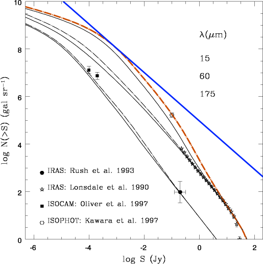 The 175 micron counts are emphasized in gold, and a line with slope -1